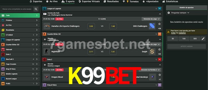 O K99Bet oferece uma grande seleção de opções de apostas em e-sports com probabilidades competitivas